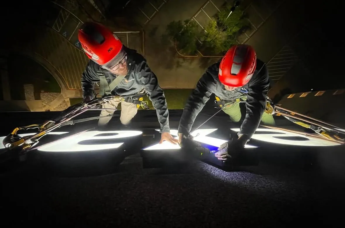 New installations, Service calls and Retro-fitting signage and lighting. Through the use of Rope Access we limit disruptions and provide cost savings access methods. Big or small projects we can mobilize to solve your at height problems.